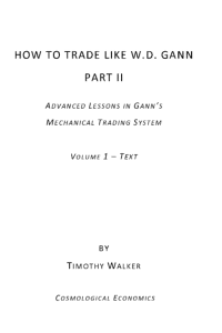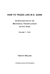 Discount Price: $495.00 WINTER SPECIAL! Includes Printed Textbook Volume 1 and electronic Volume 2 Supplement with larger charts from the text that can be zoomed in on to study, and copies of Gann's source text upon which the study is based. Part 1 of this study provides a detailed analysis of the entire sequence of 322 trades from 1915-1931 presented in W.D. Gann's US Steel trading course, broken down into clear and concise rules for application in today's markets. Walker dissects Gann's methodology, reveling deeper rules than are apparent in Gann's thin explanations in his original course. This Gann Trading Course makes an intensive study of one of Gann's core lesson, called The Method for Trading the Overnight Chart. This lesson is today published as part of the Mechanical Methods & Systems section of his Stock Market Course and consists of 9 Rules followed by 16 years of trading examples on US Steel from 1915-1931.