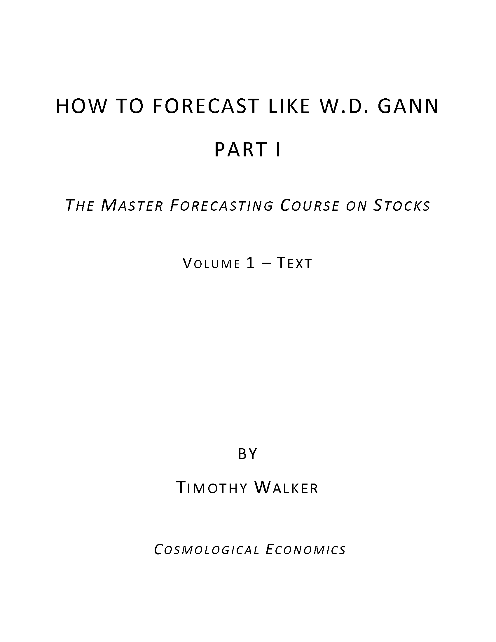 Discount Price: $750.00 WINTER SPECIAL! Includes Printed Textbook Volume 1 and electronic Volume 2 Supplement with larger charts from the text that can be zoomed in on to study, and copies of Gann's source text upon which the study is based. In 1930, at the conclusion of his book Wall Street Stock Selector, Gann wrote: “After you have learned all of the rules laid down [in the books] and have learned how to apply them… you will then be ready for a post-graduate course and will probably want to know how to forecast according to my Master Time Factor… I teach all of these rules with my complete Forecasting Methods…” At that time, he put together several courses of instruction, which he revised and updated in his 1936 Master Forecasting Course. Much of the interest in Gann’s forecasting methods centres on his enigmatic book, Tunnel Thru the Air. But Gann himself stated, in the quote above, that he taught all his rules as part of his forecasting course. The difficulty for the student is that the various courses are not grouped together in modern versions of the Stock Market Course, and even when you locate them, there are no charts to explain the examples he gives. These obstacles have both been completely overcome in my new book, How to Forecast Like W.D. Gann Part 1: The 1930 and 1936 Master Forecasting Course. I have pulled together all the lessons, as well as relevant passages from Gann’s books, and clearly demonstrated every single example on the charts. | |
